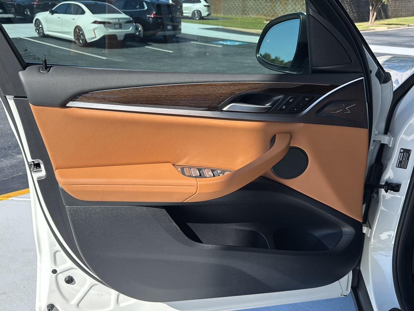 This 2024 BMW X3 is Mineral White Metallic with a Cognac Perforated Interior. It comes very well equipped with a Premium Package (Head-Up Display, Comfort Access Keyless Entry, Heated Front Seats, Lumbar Support, Heated Steering Wheel, Live Cockpit Pro (incl. Navi), Panoramic Moonroof), Parking Assistance Package (Active Park Distance Control, Parking Assistant Plus, Rear-view Camera, Parking View w/3D View), 21" Individual V-Spoke Ferric Grey Alloy Wheels, Front Power Seats, Navigation System, Apple CarPlay/Android Auto Compatibility, Connected Package Pro, Active Blind Spot Detection, Lane Departure Warning, Tire Pressure Monitor, Alarm System, Universal Garage-Door Opener, Privacy Glass, Rear Seat Back Adjustment, Storage Package, Active Protection, Active Driving Assistant, Wireless Charging, WiFi Hotspot (subscr.), Navigation System, Sirius XM Radio (subscr.), Hi-Fi Sound System, Auto Dimming Mirrors, Connected Package Pro, Decoding for No-Dazzle High Beam Assistance, Frontal Collision Warning w/ City Collision Mitigation, Ambient Lighting, Runflat Tires, Galvanic Controls, Dual Zone Climate Control, Apple CarPlay/Android Auto Compatibility, Enhanced Bluetooth® and Smart Phone Integration, Remote Engine Start, Black All Weather Floor Mats, and Daytime Driving Lights. This BMW X3 comes with a BMW Limited Mileage Warranty with coverage until 03/13/2028 or 50,000 miles. Please ask for Internet Sales to receive this special internet offer!